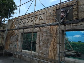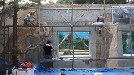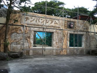 伊豆シャボテン公園 チンパンジアム正面 モルタル造形工事