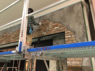 AZUL by mouusy様の雰囲気に合うようなレンガ&プラスターで仕上げています。