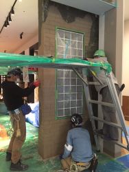 AZUL by mouusy様の雰囲気に合うようなレンガ&プラスターで仕上げています。