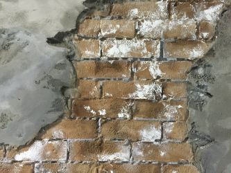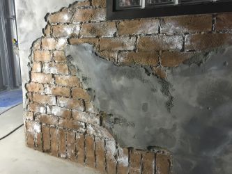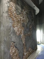 AZUL by mouusy様の雰囲気に合うようなレンガ&プラスターで仕上げています。